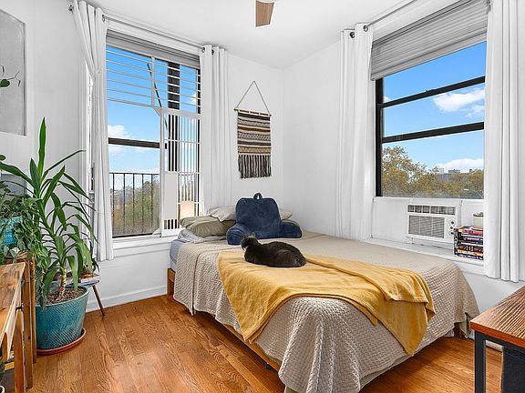 As you step into this delightful 1 bed/1 bath, you'll be greeted by the abundant natural light streaming through the oversized windows, creating a warm and welcoming ambiance throughout the home. The open kitchen, seamlessly adjoining the large dining and living area, provides an ideal setting for culinary adventures and intimate gatherings. The bedroom which could comfortably fit a queen sized bed has both south and east exposures. Adorned with high ceilings and gleaming hardwood floors, this unit exudes a blend of spaciousness with cozy vibes that feels like home. This fourth-floor gem resides in a well-maintained cooperative with both a live-in super and laundry room, offering you the essence of tranquil living right in the midst of the city's hustle and bustle.
