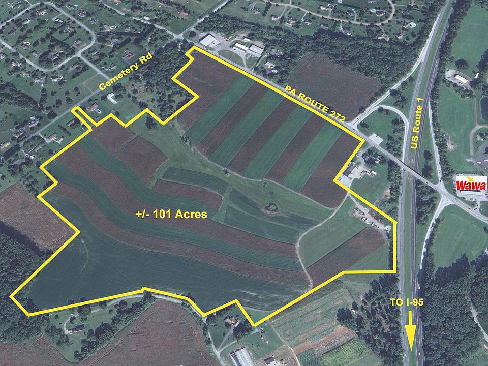 Prime parcel of agricultural land being farmed for 50+ years offered "as is". Current zoning is residential and commercial for future development potential. Public water and public sewer with capacity nearby.