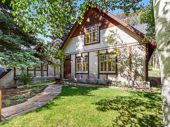 A setting of absolute tranquility envelops this residence on one of the quietest avenues in all historic Telluride. Mature Aspen, 70+ foot Blue Spruce and lushgardens frame this historic (circa 1909) traditional craftsman-like dwelling, further accentuated by the babbling sound of Cornet Creek adjoining 50 feet of thisextraordinary three-lot assemblage. Its architecture, with double cross gable with half timbering on troweled concrete and multi-paned windows, trends awayfrom earlier Victorian styles and details, and could be described as a Tudor Revival.Its timeless interiors exude traditional craftsmanship and quiet luxury filled with soulful details like handcrafted custom millwork, marble countertops, andantique doors and fixtures. Thoughtfully layered with collected pieces, the home feels both curated and lived-in. Sunlight streams into every corner, especially