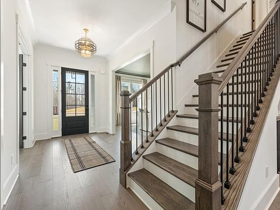 The Bellville Plan by Peachtree Residential. Our official model home! Quick Move-in! This luxurious basement estate is outfitted with all the most beautiful design features - no detail has been spared. You won't want to miss this! Welcomed in by an expansive foyer, on either side you will find a formal dining room big enough for those holiday dinners and a private in-law suite w/ wet bar perfect for guests. Continuing into the home, a towering 2-story family room w/ brick surround fireplace is supplied with vibrant natural light from the huge wall of windows. The family room is overlooked by a sparkling chef's paradise kitchen with wall oven, gas cooktop & vent hood, and gorgeous interior design selections/fixtures. Upstairs your private retreat awaits. The large owner's suite is decked out in the highest fashion with beamed ceiling leading to a spa-like bathroom w/ tile shower & garden tub, make-up counter, chic framed mirrors, and an extensive walk in closet. Rounding out the second level you will find 3 additional spacious bedrooms and 2 bathrooms. Out back is a cozy grilling deck waiting for you to cook up those seasonal meals and enjoy your coffee with the sunrise. All of this on an enormous corner lot w/ a basement makes it THE perfect home. Call TODAY! Ask about our AMAZING incentive with use of preferred lender and binding contract by 10/31/2025 and close by the end of 2025!