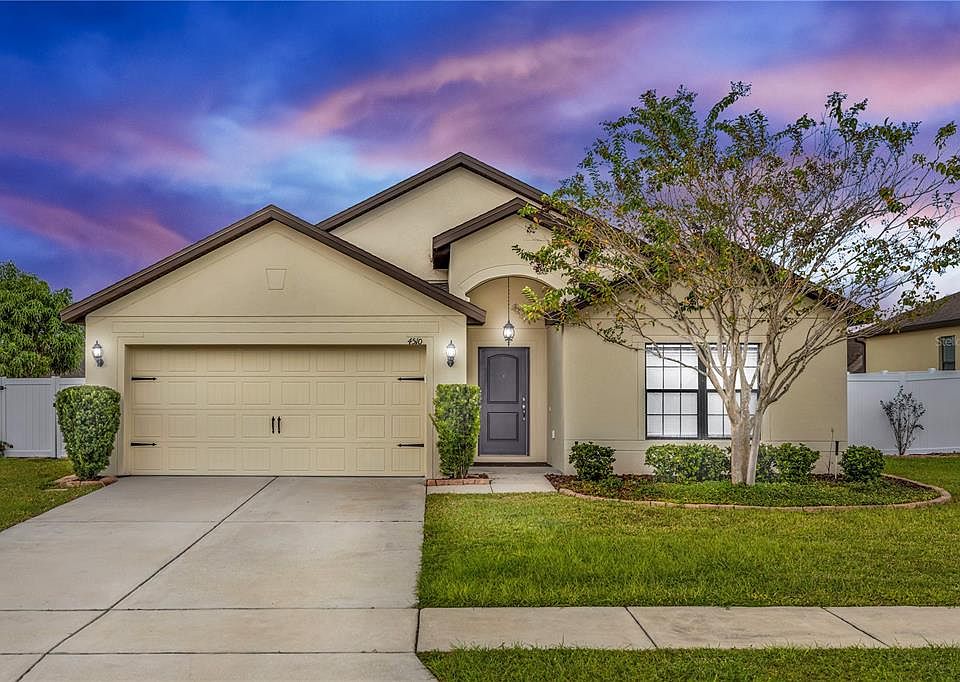 Welcome to your own slice of paradise! This beautiful 3-bedroom, 2-bathroom home sits on a spacious quarter-acre lot and features a split floor plan that gives everyone their own space. The open layout makes it easy to entertain, and it flows right out to a lovely, enclosed Florida room and a private fenced in back yard with a custom fire pit and swing. Two bedrooms and a full bath are tucked away on one side of the house, while the primary suite is on the other for extra privacy. The kitchen is upgraded and includes a double oven with 5 burners. The main bedroom is a true retreat with a huge walk-in closet, and a roomy bathroom. Step outside and enjoy your fenced-in backyard oasis, complete with a new vinyl privacy fence and an irrigation system to keep everything green and gorgeous. Plus, you’ll love the community perks: a fitness center, a pool, sidewalks throughout, and even golf cart access. It’s a great neighborhood with everything you need to live your best life.