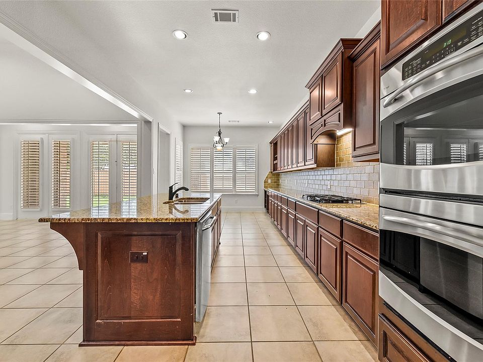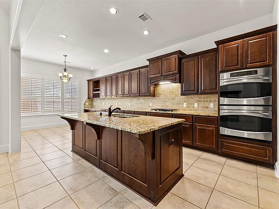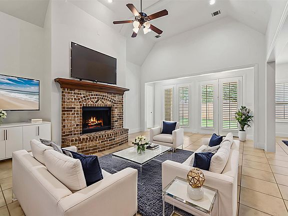 Recently painted with new carpet, a private office, back patio and game room! Welcome to 4510 Cedarfield Road in the prestigious Cinco Ranch community of Katy. This updated 4-(5) bedroom, 4-bath home sits on a quiet cul-de-sac just steps from top-rated KISD schools. The kitchen features granite countertops, a large island, and rich cabinetry with underlighting opening to the living area with fireplace, soaring ceilings, and a wall of windows. Has a breakfast nook and formal dining. The primary suite includes a spa-inspired bath with soaking tub and separate shower. Two additional bedrooms are downstairs, while upstairs offers a large game room, finished attic flex space, and another bed and bath. The covered extended patio is perfect for entertaining with no back neighbors. The Master planned Cinco Ranch Community amenities include parks, trails, pools, playgrounds, tennis and pickleball courts, community events, and more! Great location next to dining, shopping and La Centerra!