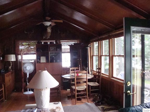 Lake Amnicon two bedroom cabin for sale. This cabin has been owned by the same family for over 50 years. Lake Amnicon is located 18 miles from Superior just far enough away from Superior to avoid the "cooler by the lake temperatures" often present in Superior. Located on Pleasant View Road it features large combined living room dining room area, two bedrooms, kitchen, wood burning fireplace, and a back entry porch. The front of the cabin has a unique stone porch. There is a small storage building for the toys and the lawn mower. The other outbuilding has three doors there is a sauna (no stove) and two other storage or work spaces. The 75' of frontage features a dock which is included and a nice sandy beach. Roof is two years old and Pella windows in living/dining room five years old. Located close to Douglas County forestry land so could be a hunting cabin.