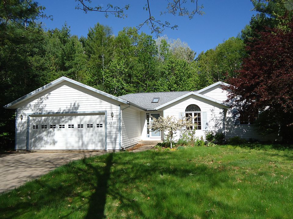 Spacious Riverview ranch home is located on a private .58 wooded lot with views of Morgan Pond and is within walking distance to Riverview School. Wildlife abounds and you will truly feel that "up North" feeling when you are home in this special property surrounded by hardwoods and pines. A great and unique main level floor plan provides an atmosphere for relaxation and entertaining with a spacious living room with vaulted ceilings and a wood burning fireplace, a wonderful family room with tongue and groove pine that is accessible through French doors from both the master suite and living room, a light and bright office/music room, a large bedroom and an incredible master suite which consists of two main level rooms, a staircase to a private lower level exercise/media room with a walkout, two walk in closets and a full bath. The kitchen features a peninsula with a snack bar, a dining area, patio doors which lead to an elevated deck with a natural gas grill connection and a large closet with a main level laundry area. The lower level offers a huge family room with a gas fire place, a full bath and a delightful two room bedroom suite. Brokered And Advertised By: Rick Mullen Realty Group Listing Agent: Rick Mullen Realty Group