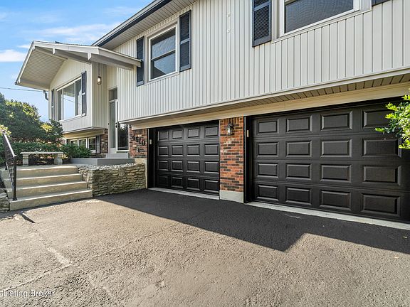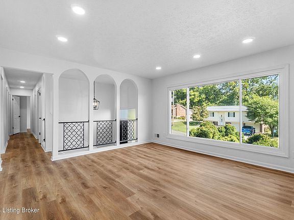 Welcome to 4510 Freda Way—a beautifully updated bi-level home blending timeless character with modern design. The exterior features a fresh beige façade with black shutters and garage door accents, complemented by a blacktop double-poured driveway and a two-car garage. Inside, gorgeous medium-tone LVP flooring runs throughout, while striking architectural arches and decorative spindles lend a Spanish Revival meets Mid-Century Modern vibe to the foyer and living area. Crisp white walls and thoughtfully chosen lighting, including sputnik fixtures and a hanging lantern, create a bright, stylish atmosphere. The updated kitchen showcases shaker-style cabinets with black hardware, stainless steel appliances, and a subway tile backsplash, opening into an inviting eat-in space. The >> primary suite features a walk-in shower, and with 4 bedrooms and 2 full bathrooms, the home offers plenty of comfort and flexibility. A second living space on the lower level provides room to spread out, while outdoors you'll find mature trees, a covered rear porch, and a handy shed for lawn tool storage. Conveniently located near Louisville favorites like Mike Linnig's and Waverly Park, this home offers a perfect balance of character, comfort, and convenience.