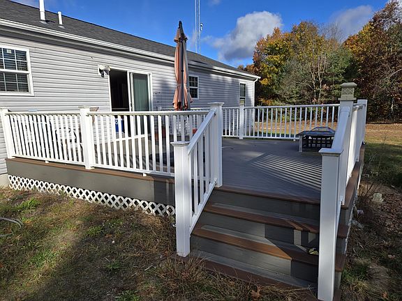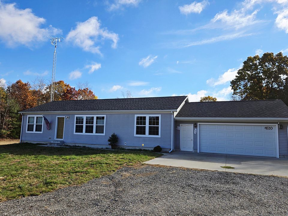 Welcome to this beautiful 3-bedroom, 2-bath home built in 2019, nestled at the end of a quiet cul-de-sac in desirable White Pine Estates. The open-concept main floor connects the living, dining, and kitchen areas, complete with modern appliances including refrigerator, stove, microwave, and dishwasher. The spacious master suite features an attached bath and generous closet space, and window coverings are included throughout. The full open basement offers two egress windows and a framed-out bedroom with materials to continue finishing—perfect for adding your personal touch or space for a growing family. Step out onto the large composite deck to enjoy your peaceful 1.9-acre lot. The attached two-stall garage adds convenience, while the impressive 30x32 insulated pole barn with steel interior and dual bays provides exceptional storage or workspace. Conveniently located near the school, this inviting property is attractively priced and ready to welcome its next owners before the holidays!