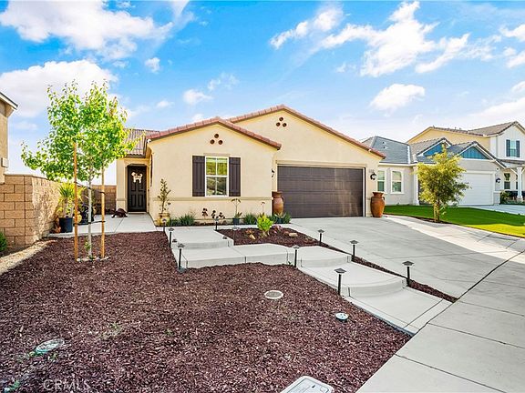 PRACTICALLY BRAND NEW SINGLE STORY 4 BEDROOM HOME BUILT IN 2022 SITUATED UP ON TOP OF THE HILL PROVIDING AN UNOBSTRUCTED VIEWS OF THE CITY, MOUNTAINS, AND THE LAKE!!! Upon the arrival at the property, you will instantly notice the extended concrete on the driveway and hardscaped pathway leading to the front porch. Passing through the wide hallway will take you to the great room with lots of natural light...which has the family room, breakfast nook/dining room, and the family kitchen. At the kitchen is the extended island with basin sink and a breakfast bar, stainless steel appliances, quartz countertops, gray maple cabinets (lots of them), walk-in pantry, and a beverage station. Spacious primary bedroom has room for a retreat with views of the city. Primary en suite has dual sinks plus vanity space, large walk-in shower, storage niche, and walk-in closet. Down the hallway are 3 more bedrooms (1 with walk-in closet & 2 with mirrored closet doors), main bathroom, generously large laundry room, and 3 coat/linen closets for extra storage. 2 car garage with a side door has lots of room for more storage and/or workshop. Step out to your private backyard with concrete floor for easy maintenance allows you plenty of options for entertaining and/or relaxing. Did I mention the UNOBSTRUCTED VIEWS OF THE CITY, MOUNTAINS, AND THE LAKE?! This well-maintained ENERGY STAR certified home is loaded with upgrades that includes: the latest in home insulation, dual-pane windows, tankless hot water heater, vinyl plank flooring, ample LED/recessed lights throughout the home, motion sensor lights, reverse osmosis system, solar panels (leased), oversized patio cover with gutters & vinyl fences & gas line connection in backyard, and much more to mention!!! Close distance to 15 FWY, shopping, restaurants, elementary school, fire station, and the new expanded 22 acres Rosetta Canyon community park with features including baseball fields, football/soccer field, tennis courts, kid's playground, and dog park!!! "THIS HOME IS ELIGIBLE FOR A $15,000 GRANT AVAILABLE TO PAY FOR CLOSING COSTS AND INTEREST RATE BUY-DOWN. TO USE THE GRANT, BUYERS MUST QUALIFY FOR A CONVENTIONAL OR FHA LOAN, SUBJECT TO GENEROUS INCOME LIMITS, DOWN PAYMENT AS LOW AS 0% AND UP TO 20% DEPENDING ON BUYER QUALIFICATIONS. NO OTHER MINIMUM DOWN PAYMENT OR CREDIT SCORE REQUIREMENTS. THIS IS AN EXCLUSIVE, PRIVATE GRANT PROGRAM". OWN THIS TURN-KEY HOME TODAY!!!