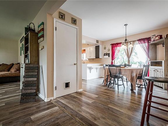 Surrounded by fields but close to the expressway this is country living at it's finest. On almost 1/2 acre this darling ranch home is what you've been looking for. Newer flooring throughout the spacious living room which opens to dinette and kitchen. Sliding glass doors in the kitchen lead to patio overlooking peaceful backyard and traquil surroundings. Three nicely sized bedrooms and a full bath round out the first floor. The walk-out lower level boasts a generous rec room, second kitchen, full bath, laundry area and plenty of storage. A newer privacy fence surrounding the backyard allows children and pets to roam freely. Refrigerator in lower level kitchen, sandbox and swingset do not remain.