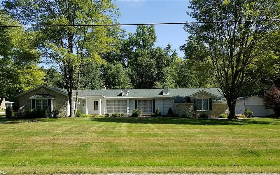 Move right into this 3 bedroom 2 bath ranch on 1.7 acres. Very desired one floor living floor plan. Spacious kitchen with center island and granite countertops. All appliances staying. Step down family room off kitchen. Large living room and dining room that also opens to the family room. Master suite with walk in closet and master bath. 2 other generous size bedrooms. Sun porch off family room. 2 car attached garage AND 2 car detached garage. Nice wooded lot. Award winning Revere Schools. Whole house generator.Updates include the following.... 2007- New well and well pump, storage tank and softner, septic system, 10KW Natural Gas Generator with auto transfer switch, roof on house, basement waterproofed by B-Dry, Added front porch and landscaping. 2014- Added to garage and master bedroom, roof on detached garage, 2016 Water Heater, 2017 Sump PumpWill not last long!!