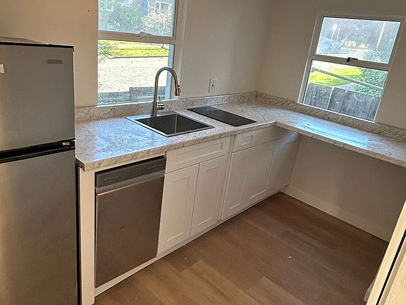Renovated 1 Bed, 1 Bath apartment in West Seattle Triplex, $1,895/month - Fully Renovated 1 bed, 1 bath apartment in West Seattle's North Admiral neighborhood, $1,895/month. Unit has been renovated with new LVP flooring, lighting, kitchen cabinets and countertops, and repainted walls. Bathroom completely remodeled, and new baseboard heaters also installed. Kitchen includes brand new cooktop and dishwasher. Common laundry provided in basement (no coins needed). Shared yard is fully fenced. Located next to Admiral Junction, unit is only a short walk from restaurants such as Mioposto and the Admiral Pub, as well as locales serving sushi, Vietnamese or Mexican cuisine. Walk or drive in less than 7 minutes to the West Seattle PCC, Metropolitan Market and Safeway grocery stores. Plentiful street parking in a quiet suburban neighborhood. Only a 4 minute drive to access West Seattle Bridge and associated ramps to SR 99/I-5. 5 minute drive to relaxing Alki Beach and the multitude of restaurants and breweries in the area. No smoking. Pets under 80 lbs. allowed with qualified PetScreening. $50 application fee per adult 18 years and older. 12 month lease offered with first month's rent and equal security deposit. Tenant responsible for all utilities. You must view property before applying. We do not accept portable screening reports or Zillow applications. We do not list properties on Craigslist or Facebook Marketplace.