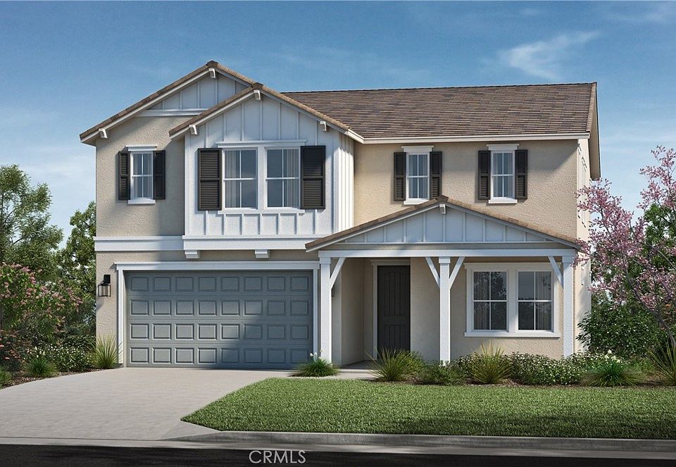 Excellent mountain views! This two story is an all electric home that is ready for you to personalize with all the features you and your family would like. This home is estimated to deliver somewhere in the summer of 2024 for those looking for an opportunity to fully personalize their home to fit their unique budget and needs. All the items below and more are the items that will come included before you begin your journey to personalize your home at our design center. This single story features towering 9 foot ceilings and comes with 5 bedrooms and 3 baths One bed and bath of which is downstairs. Start by walking through the hall entry and having 2 spacious bedrooms and a bathroom convenient for anything from traditional bedrooms but could also be used as offices. Continue to the beautiful kitchen which starts with white thermofoil, raised panel style cabinets, granite counters, stainless steel microwave, electric range and dishwasher and a large island you can use for so many different occasions. The kitchen looks out into the family and dining room making for a great open concept style home so you'll be able to enjoy company while being in the kitchen or watching as show as you're cooking. Flooring will be vinyl at the entry, kitchen, baths and laundry and are complimented by carpet everywhere else. Your primary bedroom is large enough for plenty of big furniture and is connected to your primary bath which has a 5 foot walk in shower with open vanity space and dual sinks as well along with a walk in closet. Close to shopping, freeways, schools and only a short drive to Lake Elsinore this location is hard to match. solar is for lease or purchase on this home so feel free to choose what works best for you! Photo is a rendering of the model. Buyer can either lease or purchase the Solar.