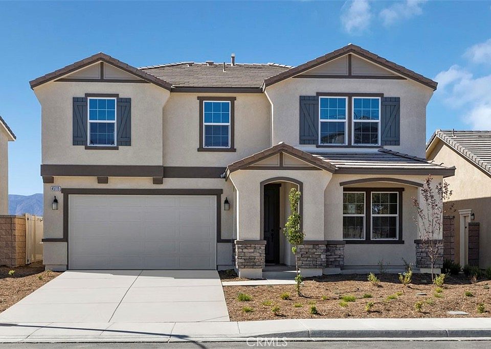 This spacious two-story 2519 Plan features a beautifully designed open concept floor plan with a sliding patio door inviting your entertaining to flow outside, a large chef’s kitchen, a convenient bedroom downstairs with adjacent bath and plenty of storage. Upstairs includes a spacious loft, four additional bedrooms and a large laundry room. This home is under construction and comes with designer chosen upgrades including luxury vinyl plank throughout the main areas of the home, in the kitchen there are upgraded quartz counters, large Kohler single basin sink and Moen High Arc faucet, each bathroom includes upgraded undermounted Kohler sinks. Other upgrades include recessed lighting throughout and a splendid separate tub and shower in the primary bathroom. Close to Rosetta Canyon Sports Park, schools, shopping, and freeways, this location is hard to match! This home will be ready to move in this Fall. Photo is a rendering of the model. Buyer can either lease or purchase the Solar.