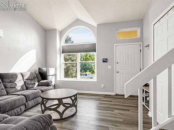 Step into a tri-level layout that’s not just functional—it flows. Vaulted ceilings, skylights, and sleek brand-new laminate flooring create a bright, welcoming feel from the moment you enter. The living and dining spaces are perfectly poised for weekday comfort or hosting friends with ease. The kitchen is clean, open, and equipped with built-in appliances—thoughtfully designed for both everyday meals and weekend gatherings. On the lower level, relax in a cozy family room complete with a wood-burning fireplace and sliding doors that lead to your private patio. Whether you're winding down indoors or heading out for fresh air, this space blends both seamlessly. Upstairs, the primary suite is your personal retreat: plush carpet, a roomy closet, and an attached bathroom. Two additional bedrooms—with roomy closets and shared bath—give everyone space to stretch out and breathe. Outside, enjoy a peaceful backyard with a new sliding door, perfect for sipping coffee, grilling under the stars, or just relaxing—no HOA, and amazing Front Range and Pikes Peak views to elevate every moment. For added peace of mind, a newer roof stands ready to protect your investment. Located in the desirable Colorado Centre neighborhood, this home is just minutes from military bases, shopping, schools, and entertainment—yet it still offers a comfortable, everyday retreat. Schedule your private showing today!
