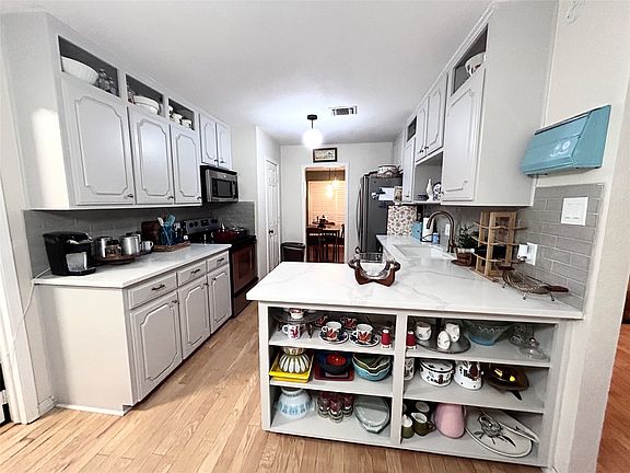 Come see this lovely home that offers ample space for dining and entertaining. Hardwood floors throughout, built in cabinet in the kitchen to display your dishes, and plantation shutters in all the rooms! This home sits on a large corner lot with mature pecan trees shading the backyard. There is extra room for parking in the circular driveway. The sellers added modern updates throughout the home which include a new cedar wood fence with 2 double gates and 2 single gates. The cedar posts and cedar panel that was added to the front porch add style and extra charm. The large address numbers, new steel designer front door and porch lights were well thought out. The sellers added new light fixtures throughout the home, installed cabinet doors in the mudroom, installed new tile in the laundry room and mudroom, put in landscaping, as well as installing a barn door in the primary bathroom. Don’t miss out on this charming home! It has so much to offer!