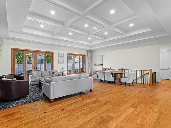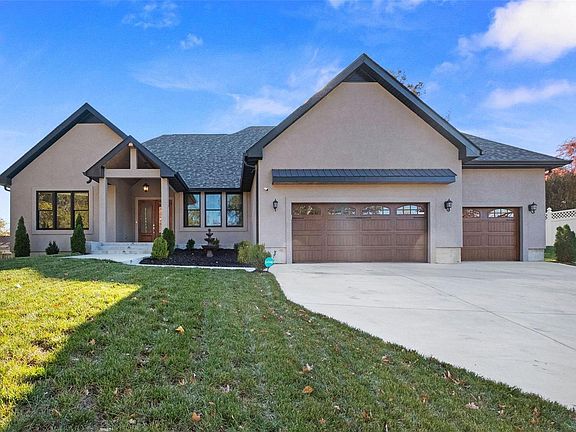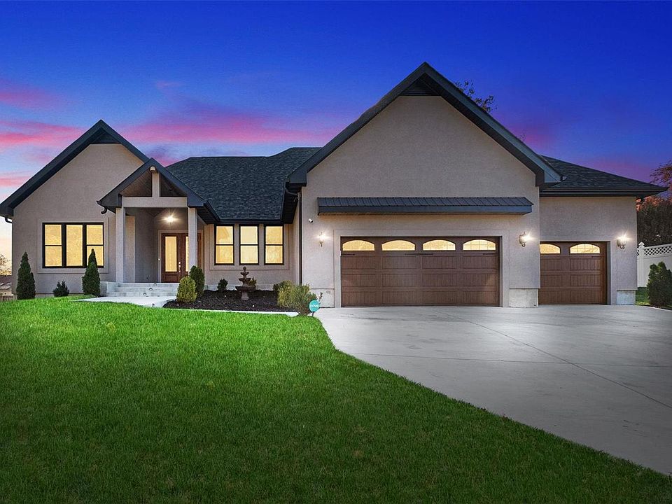 This unique custom-built home, completed in 2022, boasts a spacious open great room with 12 ft tall coffered ceiling and recessed lighting. The main floor has engineered hardwood floors, 7.5 inch baseboards and 8 ft sold wood doors. It has an open staircase going to the lower level with black iron balusters. The kitchen features high-end stainless steel appliances (front control Forno 5 burner gas stove, Fisher & Paykel refrigerator, built-in island microwave, and Dacor in cabinet dishwasher); quartz counters, large custom range hood, & center island. The master suite has his & hers walk-in closet, open glass shower, separate tub, double sink, & custom tile work throughout. 5X7 walk-in closets in two other bedrooms. Main floor hall full bath has double sink & custom tile. There is half bath, large pantry & coat closet off mud room. It has extra insulation throughout, huge covered patio with wood ceiling, 3 car insulated and drywalled garage with high lift doors & partially fenced yard. Additional Rooms: Mud Room