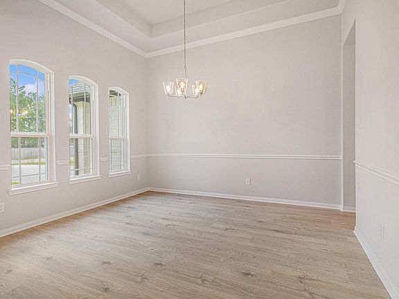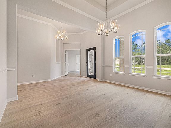 Beautiful one-story on nearly an acre with space to add a shop or store your boat, RV, or trailer! This 2,617 sq ft home features 4 bedrooms + study, dining, 3 baths & 3-car tandem garage w/ 8’ door. High ceilings, 8’ front/interior doors, crown molding & laminate wood floors (carpet in bedrooms). Gourmet kitchen boasts double-stacked cabinets, quartz counters, SS built-ins, apron sink, black farmhouse fixtures & designer backsplash, opening to the family room w/ shiplap fireplace. Private primary suite w/ spa bath + guest suite. Covered patio, oversized utility, sprinkler, propane, smart wiring, USB/media outlets, front gutters & more! Dayton ISD, low tax rate!