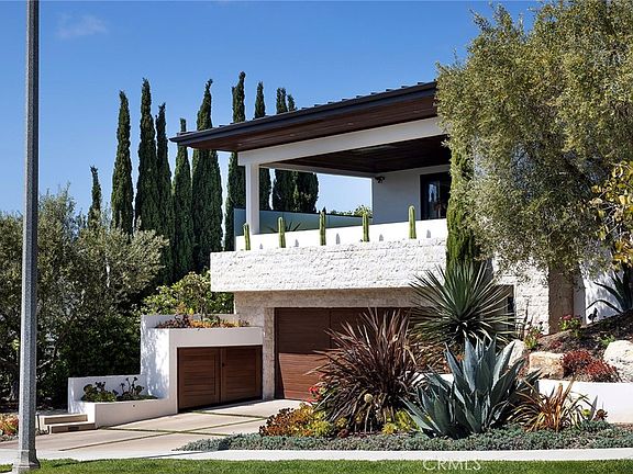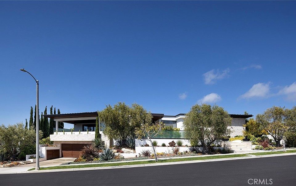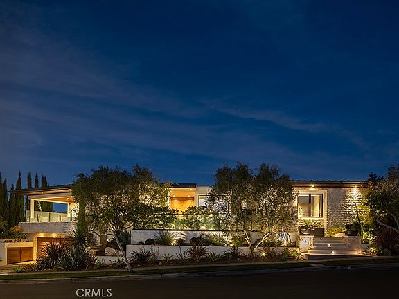 Located in the prestigious beachside community of Cameo Shores in Corona del Mar, this impressive residence presents nearly 6,000 sf of single level living, plus 900 sf of lower level entertaining space on an elevated parcel of over 12,000 square feet. Behind the gated entry, reveals a warm and welcoming floor plan complemented by a private outdoor oasis with a sparkling pool, relaxing spa, firepit and several seating and dining vignettes. The abundance of space is felt throughout the residence, with voluminous ceilings and natural light permeating through walls of glass. Ocean views are experienced and enjoyed by the south-facing patio and adjacent living and dining rooms. The culinary kitchen with a fifteen-foot island is a central gathering space for the home, harmonizing living, dining and outdoor spaces. A secondary kitchen & bar provide convenient service to the central pool space, while an ideally placed media room with bi-fold doors extends the indoors to outdoors. Interior finishes are elegant while providing a subtle palette of textures. Solid wood flooring anchors the natural stone countertops, custom wall coverings accent the cabinetry, sophisticated lighting, and automated window shades & curtains functionally finish ease of living. The home is equipped with full home automation by Control4 which manages lighting, audio/visual, heating & air, shades and security. This property can be purchased with current designer finishes and accessories. The main level primary suite encompasses an entire wing of the home, starting with an executive office. Just beyond is the spacious primary bedroom with fireplace, additional seating and private access to the pool and spa is discovered. Dual vanities, custom cabinetry, a stone & glass shower, and tub thoughtfully detail this tranquil space. A perfect finale to the primary suite is a closet featuring a center island with dual-sided drawers and enclosed wardrobes. The functionality of this home is further exemplified with four-bedroom suites and two powder bathrooms. Additionally, enjoy a subterranean level with a 4-car garage, wine cellar, full bathroom, and a state-of-the-art movie theater with entertaining bar. A rarely found rooftop deck is a rare perk in Cameo Shores, offering breathtaking panoramic ocean views. Cameo Shores affords gated beach access to three neighborhood beaches and Crystal Cove State Beach, along with a short stroll to countless amenities, shops and restaurants along PCH.