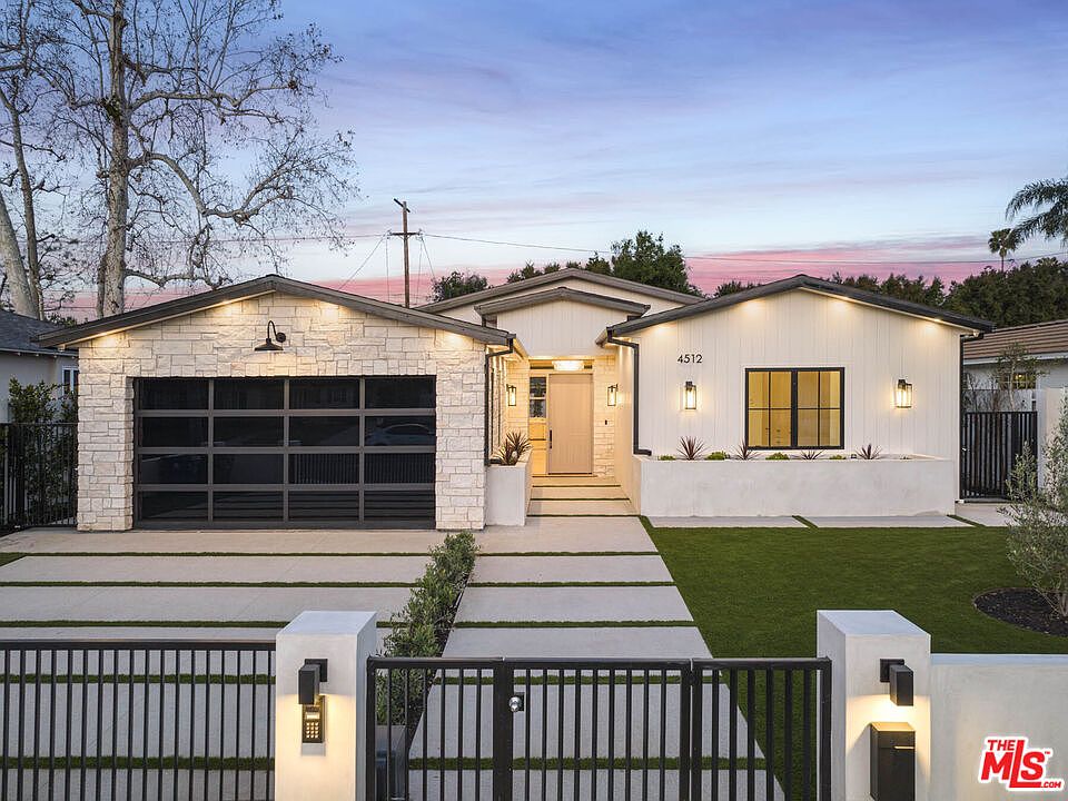 Located moments from Erewhon, Equinox, and the newly reimagined Sportsmen's Lodge, this simple yet sophisticated single-story modern farmhouse offers effortless luxury in the heart of Sherman Oaks. Thoughtfully designed on one level, the home features 4 spacious en-suite bedrooms and 4.5 bathrooms. A dramatic entry foyer anchors the flow, leading to beautifully proportioned living spaces. The gourmet chef's kitchen is a showpiece, appointed with custom quartzite countertops, a generous center island, La Cornue range, and Thermador appliances ideal for both everyday cooking and elevated entertaining. The serene primary suite is a private retreat with a generous wardrobe, spa-inspired bath with a soaking tub, double shower, and refined natural stone finishes. Each additional bedroom is en-suite, highlighted by bespoke plasterwork, artisanal tile, and refined stone details. Designed for California living, the property is secured by a gated front yard and features a resort-style rear yard with a pool, spa, and outdoor kitchen perfect for gatherings with friends and family. Modern amenities include solar panels and a Control4 smart home system for comfort and convenience. An exceptional blend of style, function, and location, this is Sherman Oaks living at its finest.