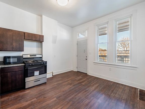 Nicely painted and spacious 3 bedroom apartment for rent on 2nd floor in large Chicago graystone building. Apartment features large living room w/ separate spacious dining room, and 3 full bedrooms with/ closets . This bright and spacious apartment features laminate hardwood floors and stainless steel appliances and nice outdoor deck. Building features included camera security system, shared common area lawn care and snow removal. Tenants pay own electric and gas. Avail Oct 1, 2025.