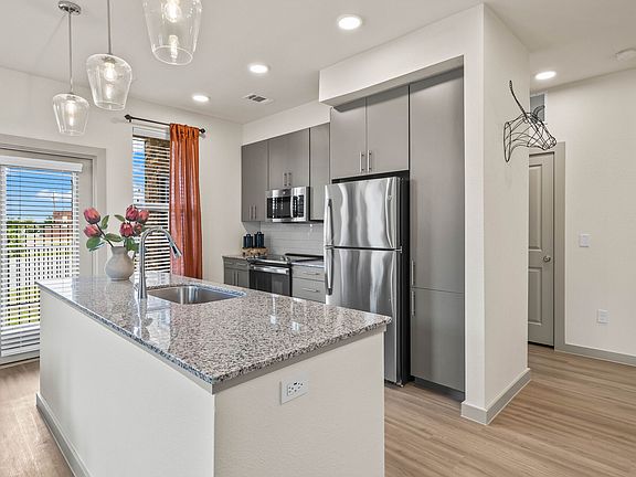 - Exterior features: Balcony, Business Center, Carports, Coffee Bar, Courtyard, Detached Garages*, Game Room, Granite Countertops, Kitchen Island, Large Pantries, Lawn, Pet Park, Stainless Steel Appliances, TV Lounge, Vanity Mirrors