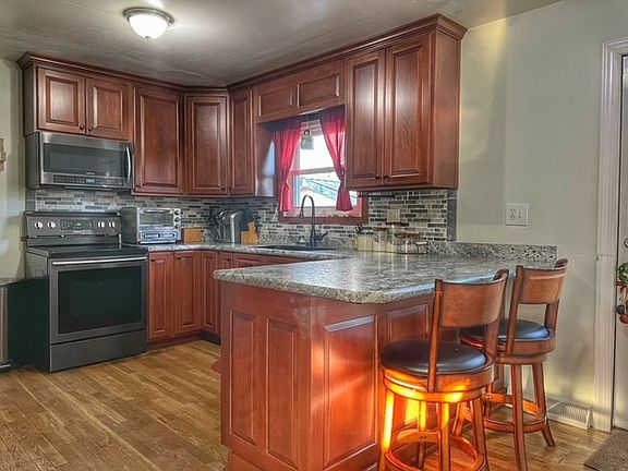 Completely remodeled ranch-style home on 1.4 acres with a large Amish built front porch. Inside you will find Amish made, cherry wood cabinetry with a pull out pantry and spice cabinet, and soft-close doors. This home has a heated basement with top-hinge vinyl windows, office location and laundry. The main floor has original hardwood floors throughout, and a newly remodeled bathroom. Also, new metal roof, new vinyl siding, new exterior doors, new double hung vinyl windows, new 200 amp breaker panel, new garage doors with remote entry, newer hot water tank 2017, newer HVAC 2017, new covered entertainment area, new black vinyl-coated chain link fence, new 12 x 24 metal roof shed. Homestead exempted. Hot Tub and vented pellet stove included in sale of home. A must see!