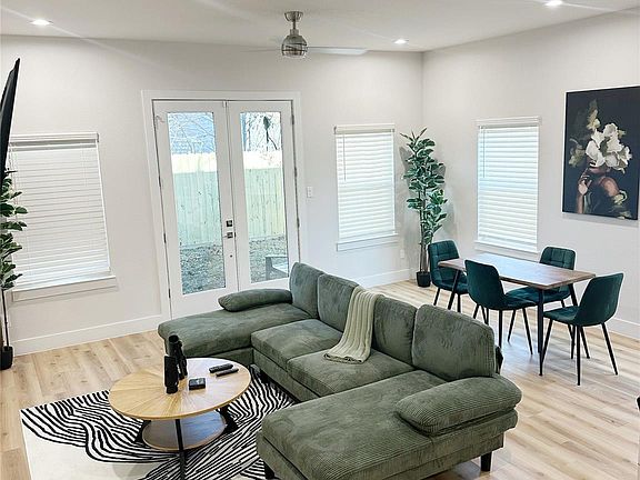 Welcome to fully furnished 4513 Reed Road #B, an individual unit of a modern duplex offering 3 bedrooms, 3.5 baths, and approximately 2,620 square feet of contemporary living space. Built in 2024, this two-story residence features an open-concept layout with high ceilings, recessed lighting, and abundant natural light throughout. The kitchen includes sleek dark cabinetry, marble-style countertops, stainless steel appliances, gas range, and a large island with breakfast bar seating, flowing seamlessly into the living and dining areas. Each bedroom offers generous closet space, with the primary suite featuring dual vanities, a soaking tub, and a glass-enclosed shower. Additional highlights include an attached two-car garage, EV charging capability, central gas heating, and modern finishes throughout. Offered furnished or unfurnished (request reduced rate), this private duplex unit provides flexible living options in a convenient Houston location with major amenities.