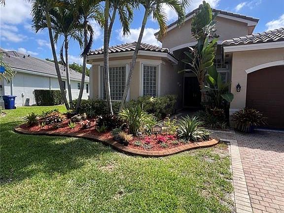 Spacious and inviting 5/3 home located in the prestigious and highly sought-after, family-friendly community of Sunset Lakes. With room for everyone and a layout designed for comfort, this home provides the ideal setting for creating lifelong memories. Enter through a covered front porch and elegant double-door entry into a warm, functional floor plan. Tile flooring flows through the main living areas, with cozy carpeting in the bedrooms. Enjoy a formal dining room, living room, and a large family room—perfect for everything from holiday gatherings to movie nights. The expansive kitchen offers generous cabinet space and a smart layout that makes meal prep a breeze. Step outside to your private screened, heated pool and pavered patio—ideal for weekend BBQs, entertaining, or unwinding after a long day. Additional features include a new $45,000 barrel tile roof (installed Oct 2023), accordion storm shutters, a laundry room with sink, and a spacious 3-car garage. Absolutely wonderful home.