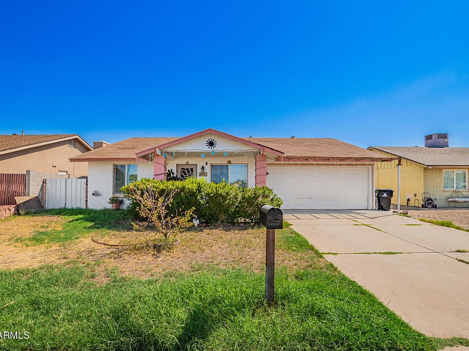 Fall in love with this fabulous 3-bed, 2-bath home in Glendale, AZ! Displaying a 2-car garage and a welcoming front porch, this gem sets the tone from the start. Inside, abundant natural light fills the inviting living room and large great room. Thoughtful details include tile flooring, ceiling fans, and neutral color palette throughout. Impeccable kitchen comes with recessed lighting, stainless steel appliances, tile backsplash, plenty of cabinetry, and granite counters. Sizable primary bedroom promises a good rest, featuring a private bathroom with a convenient grab bar in the shower. Spacious backyard provides a covered patio where you can unwind while enjoying your favorite beverage. Act now before it's gone. Hurry!