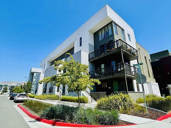 Step into this stunning corner unit, end-townhome built in 2021 and sited in the highly coveted Innovation community. With 3 bedrooms, 3 bathrooms and approximately 2,169 sq ft of thoughtfully laid-out living space, this residence offers modern luxury and immediate move-in comfort. Highlights you'll love: Dramatic high ceilings and expansive windows in the main level create a grand, light-filled living space. Tasteful upgrades throughout: premium wide-plank flooring, plush new carpet, designer tile backsplash, and a chef-ready kitchen. Corner unit location offers extra privacy and no through-trafficideal for tranquility. Smart, future-ready features: EV charger in the tandem 2-car garage, built-in storage, as well as smart LED dimmers and WiFi mesh system. Prime location: Easy access to both I-880 and I-680, enabling smooth commutes and connectivity. Proximity to amenities: Just steps to the clubhouse and swimming pool, parks, top-rated schools (including a 10/10 elementary school only ~0.1 mi away) and quick access to retail, restaurants and transit