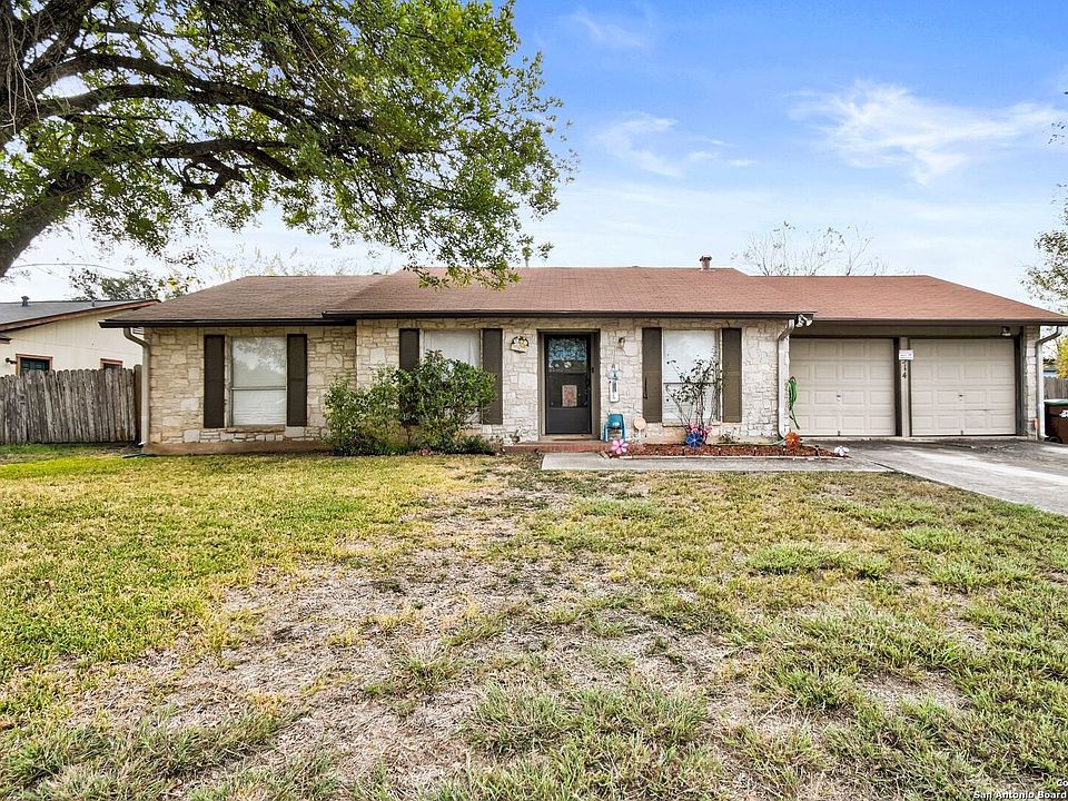 Discover the opportunity to create your dream home in the established Woodlake neighborhood. Set on an oversized corner This 1,590 sq ft property features a classic rock facade, high ceilings, fireplace, and an open layout offering excellent natural light. The kitchen includes ample cabinet space, breakfast nook, and eat-in bar-ideal for updates to match your style. Primary suite offers a walk-in closet, with additional bedrooms providing flexibility for guests or office space. Indoor utility room and laundry hookups included. The expansive corner lot is a standout with mature trees and plenty of room for outdoor living, gardening, or possible expansion. Perfect for buyers looking to add personal design touches and build equity. Conveniently located near major roadways, schools, and area amenities. A solid home with tremendous potential in a neighborhood-ready to be reimagined.