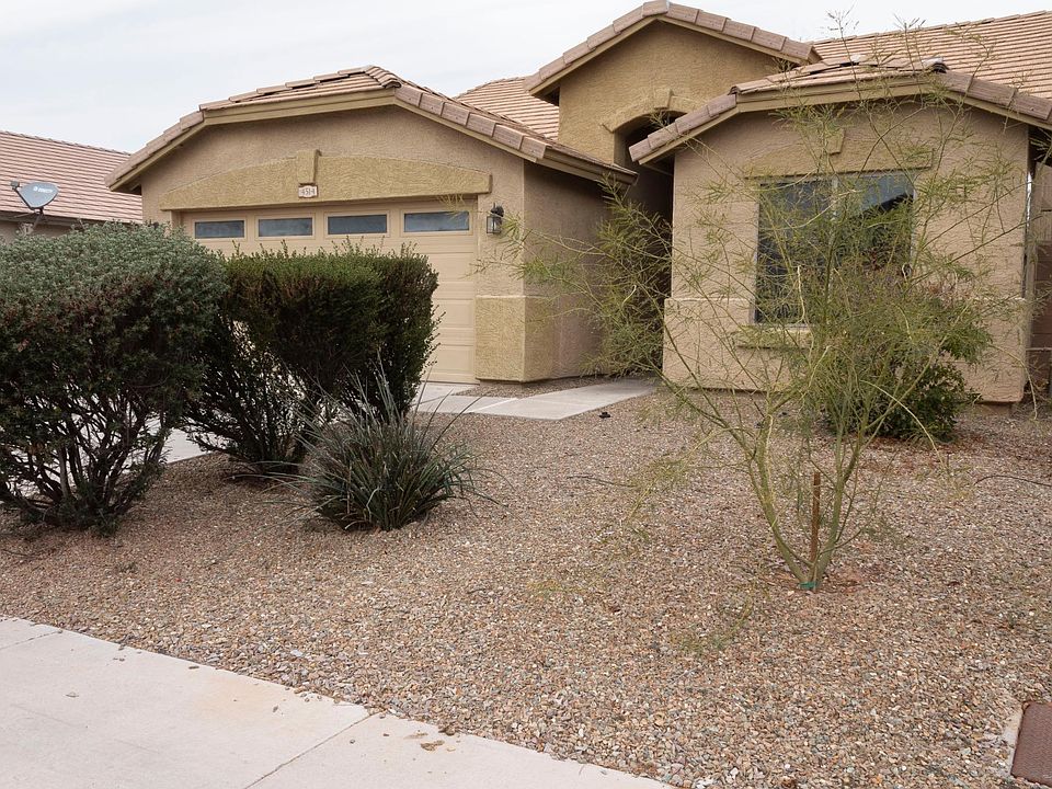 Nicely upgraded Laveen home with green features, lots of storage space, and an exquisite backyard design -- located on the greenbelt less than 100 yards from the playground and picnic ramada. Several lights are on timers/sensors, dual flush toilets, increased insulation, and more green components. Interior flooring is mostly polished concrete and bamboo, with carpet in one guest bedroom. Window coverings from Hunter Douglas in main living area, Low-E windows throughout, and a ton of attic storage above garage, plus a closet organizer in master BR walk-in. Backyard is desert landscaped, with several trees, lots of beautiful flagstone, large fire pit, and deluxe BBQ area. Monthly landscape maintenance included. This home is perfect for entertaining and relaxing! December rent discount and redecorating credit may apply!