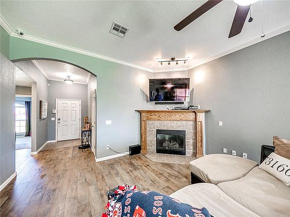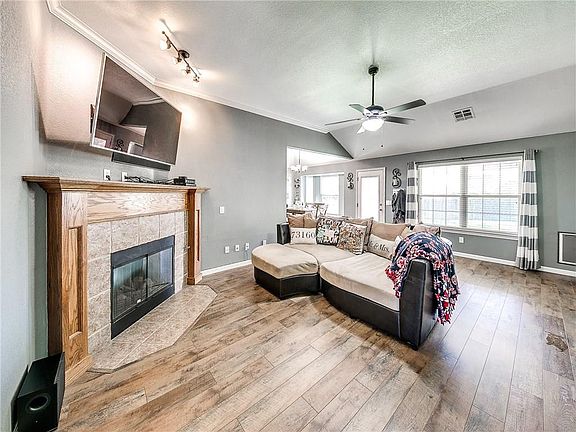 Beautifully updated move-in ready home! Located at the end of a cul-de-sac! This beautiful home comes with updated new wood floors in living room and hallway, new carpet in bedrooms, fresh paint throughout, upgraded smart light switches, hard wired security cameras, an 8 person storm shelter, high impact shingles on roof, sprinkler system, fire pit in backyard, storage shed, and so much more!! This clean 3 bedroom, 2 bathroom home is ready for the new owners. Entry into the living area features high ceilings and a fireplace that leads right into the kitchen. The bedrooms are spacious with walk-in closets allowing more space in the rooms. The large master bath comes with double vanities, walk in closet, and features a walk-in shower and tub. The covered back patio and large backyard creates the perfect space for entertaining and room for the kids and pets to play. This home is conveniently located, only minutes from shopping, entertaining & restaurants near I-35 and 19th St.