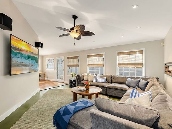 Unwind on the posh sectional in the living room, which is located just off the kitchen. With a large flatscreen TV and lots of cozy seating, its the perfect space to host a movie night.