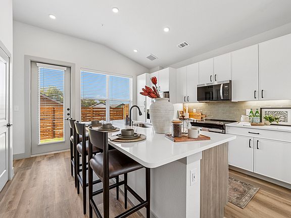 - Exterior features: BILT Rewards, Barbecue, Built-in pantries, Co-working space with individual offices, Conference Room, Dual vanities*, EV charging stations, Energy efficient stainless steel appliances, Extensive green spaces, Matte black hardware, On-site dog parks, Open floor plans with windows throughout, Private yards & patios, Texas sized private garages*, Two-toned soft close cabinets