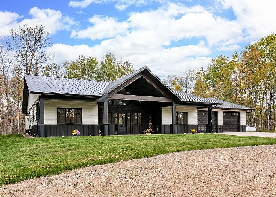 Discover single-level luxury on 5 private acres in this brand-new 2025 custom home. Featuring 3 bedrooms, 2.25 baths, and a remarkable 4-car heated attached garage, this residence perfectly blends contemporary design with country living. The open floor plan flows effortlessly with natural light illuminating every corner. At the heart of the home, stunning black walnut kitchen cabinetry creates a warm, sophisticated gathering space for family and friends. Car enthusiasts will love the heated 4-car garage equipped with a dedicated car wash bay and EV charging station—modern convenience meets sustainable living. The private primary suite offers a peaceful sanctuary with a spa-inspired ensuite featuring a spacious walk-in shower designed for ultimate relaxation. Generous covered porches and patios extend your living space outdoors, perfect for enjoying morning coffee or evening entertaining while taking in serene views of your expansive property. With no stairs, abundant natural light , and 5 acres of possibilities, this move-in-ready home offers the complete package. Schedule your showing today!