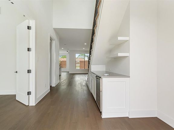 Contemporary 3959 sf new construction. 4 bedrooms, 4 bath functional floorplan with 1st floor yard facing private master suite with 20 x 10 bath and 16 x 10 closet. Ideal private first floor 18 x 12 study. The 1st flo0r 21 x 20 rear yard facing living area opens to a 31 x 13 island kitchen-dining room and 21 x 10 two story iron-wood staircase foyer with wine bar. Second floor has a closed off 17 x 15 living area, 13 x 11 flex space-study for multi professional needs. This L shaped design enables a 36 x 35 pool sized yard The SOLO Inwood Park location is nearby to Inwood Village & Lovers Lane shopping and restaurants