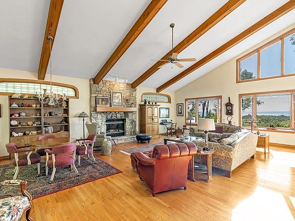 This immaculately maintained and pre-inspected home offers stunning panoramic bay views in most rooms. It overlooks the White Cliff Fen State Natural Area so you're assured of pristine vistas. This 4 bed 3 bath home has a 1st floor guest suite with a gas fireplace, and a three room master suite complete with access to a bonus room above the three car attached garage. The 800sf great room has a vaulted ceiling, a wood burning fireplace, and bay windows to help bring in nature's splendor, which can be thoroughly enjoyed in the large 3 season room. The ready-to-finish walkout basement has almost 9' ceilings and is stubbed for a bath. The adjoining buildable 1.27 acre lot is also available. See MLS# 133984, and 133981.