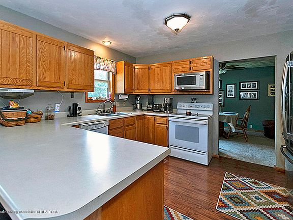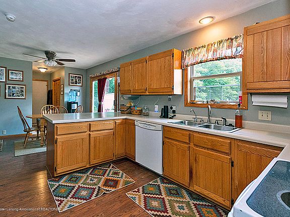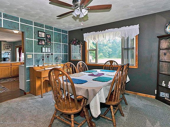 Great 4 bed, 3 full bath home situated on 2.36 private acres. Great location in the desirable Eaton Rapids school district and conveniently located to downtown. The home has new carpet, new deck, new fan and light fixtures, main floor laundry, newer roof, newer A/C and a wood burning stove in the mostly finished basement. The additional pole barn out back features a 1 bed, 1.5 bath apartment space which contains it's own kitchen, living area, dining area, W/D. The pole barn has separate heat andC/A. This is a great home and includes a one year home warranty through American Home Shield!