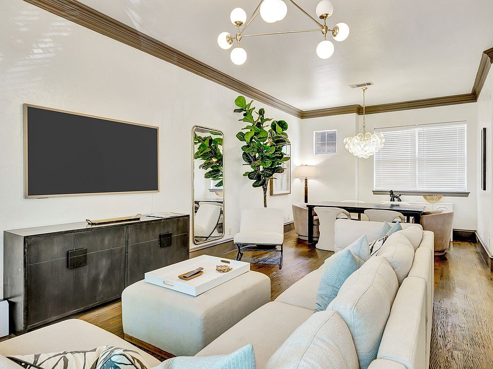 Beautiful Uptown East 3-story condo nestled in a small, GATED community. It's just minutes away from prime hotspots including Cityplace, Knox Henderson, Uptown, Downtown, Deep Ellum and Greeneville Ave. This Dallas gem was remodeled in 2025 and features soaring ceilings, abundant windows for flowing natural light, quartz kitchen countertops, marble shower in master, leathered marble countertops in all bathrooms, elegant extensive crown and base mouldings, fresh paint throughout, hand scraped hardwood floors, Smart thermostats, upgraded plumbing fixtures and attached 2 car garage. My favorate--the highly desired, sophisticated Visual Comfort lighting!! The backyard is shaded with turf and 8 foot board-on-board wood fence for added privacy. Stunning view of downtown from the 3rd floor! NEW Rheem hvac installed April 2022. Great price point for East Village! Schedule a tour-you will not be disappointed!