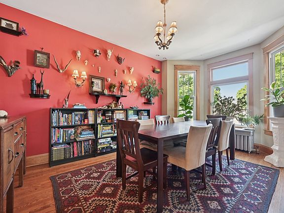 Charming 3-Bed, 3-Bath Vintage Farmhouse with Modern Updates! This beautifully updated vintage farmhouse blends original charm with modern comfort. From its inviting front porch and blooming lilac bushes to its light-filled interior, this home is full of character and warmth. Step into a spacious entryway with built-in storage, a cozy sitting area, and hardwood floors that run throughout. The flexible front room can serve as a dining or living space and flows into a large kitchen featuring a breakfast nook, ample cabinetry, and a vintage stove. The nook overlooks a serene, wooded backyard oasis. The main floor also includes a generously sized bedroom and an updated full bath. Upstairs, enjoy bonus living space with a sunroom/office, sitting area, two large bedrooms, and a second updated bath. The nursery shines with a hand-painted mural with glow-in-the-dark stars. The finished basement offers even more living space with a large rec room, office, updated spa-like bath, and laundry area. Outdoors, the oversized, private backyard is a nature lover's dream-filled with mature trees, edible berry trees (serviceberry & mulberry), wild violet ground cover (no mowing needed), custom garden beds, and a chicken coop. A 3-car detached garage and gated parking pad complete the package. Recent updates: New AC (2017), appliances (2018), washer/dryer (2025), and more (see broker remarks). Ideally located near multiple parks, North Branch Trail, CTA Blue & Brown lines, I-94, groceries, and restaurants-this city homestead offers the best of both worlds!