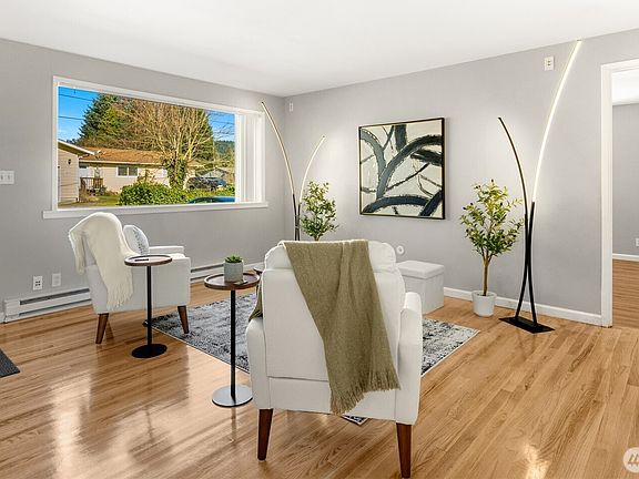 Move-in-ready Glencoe beauty on a rare flat, oversized lot. 3 beds incl 2 extra-large rooms ideal for bed + office. Fresh interior paint, new hardware & Dolby Atmos-wired living room. Renovated kitchen w/large sink, insta hot water, tons of cabinets, new appliances, & extra outlets. Bathrooms updated. Big upgrades: new plumbing/drainage & 200-amp panel w/updated wiring. Huge fully-fenced backyard w/mature pines, refreshed landscaping & new 12x16 shed. Long street frontage = ample parking + easy RV/boat access & room for future garage/ADU (buyer verify). Just 2 blocks to stores & dining & retail. ~18 min to Microsoft/Eastside tech & Boeing. Renton schools. Perfect mix of space, upgrades & location!