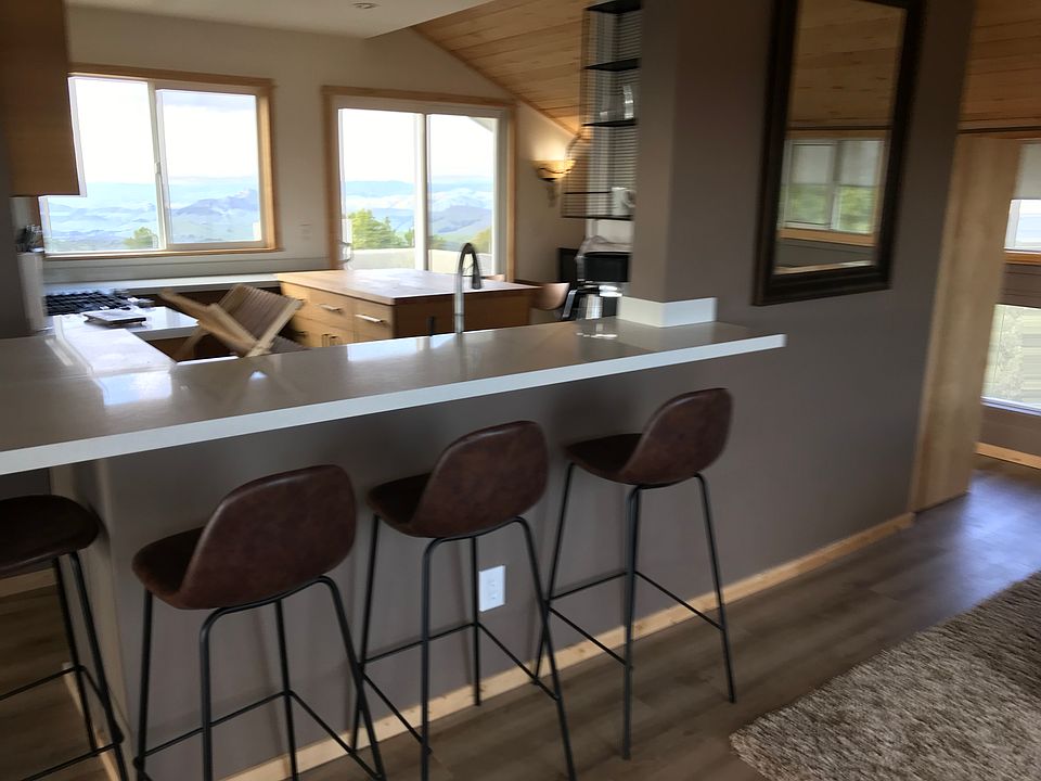 The third floor of our house is a completely separate apartment/studio. With separate entrances it has bedroom, living , kitchen and bath. There are three outdoor decks with magnificent views. Roughly nine hundred square feet, it is fairly contemporary and fully furnished.