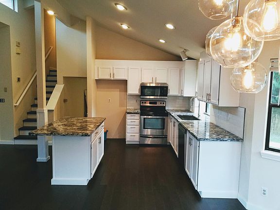 Fully renovated home in the highly desired Stonebrook community! Enjoy gorgeous design in a 3 bed / 2.5 bath / 2-story home with a modern, open concept and wood plank flooring throughout. Living room features vaulted ceilings, dramatic 14-foot wood burning fireplace, and sculptured glass canopy lighting. Kitchen features custom granite countertops, under-mount sink, an oversized island for entertaining, and new stainless steel appliances. Bathrooms feature floor-to-ceiling tiled showers and floors and granite countertops. The family room is perfect for playtime and the backyard has a large garden area and fruit trees! All appliances are included (laundry washer, dryer, refrigerator, oven, microwave, dishwasher). All utilities are to be covered by renter. The Stonebrook community connects to Dash Point State Park, is a safe area by the Green Gables Elementary School, and is conveniently located with all the amenities close by, and near the 5 freeway and the Federal Way Park & Ride. Available now! If you're interested please reach out to Eddie. Thanks! All major appliances included, renter covers utilities.