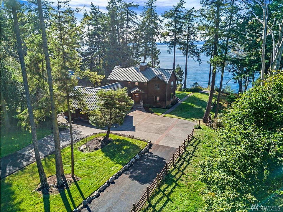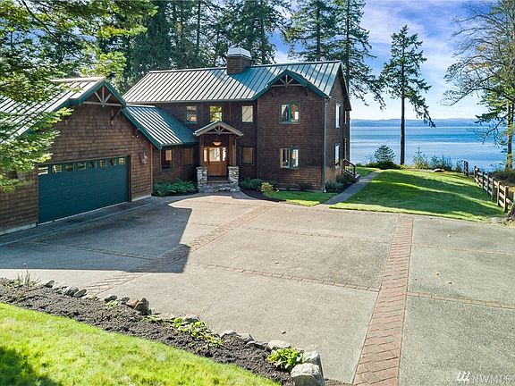 Westside Waterfront Home with Beach. Custom 2741 sq. ft home on 1.2 acres. 3 bedroom, 3 bath w/ cozy great room designed around Fieldstone fireplace with open kitchen, granite countertops and doors opening on to deck, lush green lawn and stairs down to beautiful beach on Andrews Bay. Protected bay for summer moorage, sunset picnics on the beach while you watch the whales swim by. Master bedroom on main and light airy family room w/ guest suite above. Private, sunny, the perfect island property.