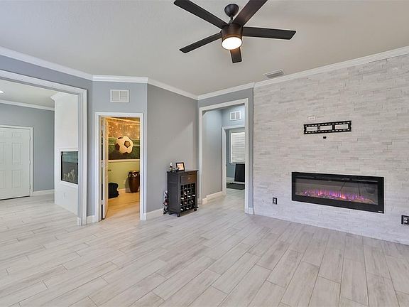 Short Sale. Welcome HOME to this beautifully UPDATED 3 Bed/2 Bath PLUS den/office home located in the desirable gated community of Magnolia Park! Located on a conservation lot with no rear neighbors, this home is sure to impress! Once inside, you are greeted with a built- in fish tank located in the foyer, high ceilings, crown molding, wood look tile flooring throughout, and an open and bright floorplan with upscale design features. The living room has a beautiful stone wall with built in fireplace and is open to the kitchen which allows the perfect setup for entertaining. The eat in kitchen is complete with top level granite countertops, stainless appliances, center island and pantry. The owners suite makes for the perfect place to unwind and includes a large walk in closet and en-suite bathroom with custom large glass shower, rain showerhead, stone wall, beautiful cabinetry, granite, and raised vanity with dual sinks. It feels like a spa! The secondary bedrooms and bath are spacious and also include custom details and finishes. The den/office can easily become a 4th bedroom if needed! If you like to spend time outdoors, the extended lanai provides additional living space and privacy with a gorgeous view. Magnolia Park is a great community with LOW CDD fee and an HOA that includes lawn care and irrigation/exterior water. There are 2 pools, splash pad, parks, and basketball court. Conveniently located close to shopping, dining, highways, stunning gulf beaches, MacDill AFB, and all that Tampa Bay has to offer! You will not want to miss!