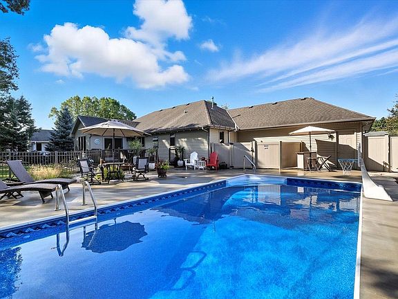 Truly one-of-a-kind 3 bed/3.5 bath home with 4-seasons room and bonus basement room, perfect for easy living and entertaining! Enjoy the new heated in-ground pool, large deck, beautifully landscaped yard, that is also fully fenced in. It's the perfect setup for summer fun, backyard gatherings, or simply relaxing in your own slice of paradise. Inside, an open-concept layout, vaulted ceilings and a cozy gas fireplace welcome you in. The primary suite boasts two large closets and a private bath. The finished lower level features a rec room, custom wet bar, spa-like bath with jetted tub, and walk-in shower. Epoxied 3-car garage adds storage and style. Updates: Furnace/AC (2024), Water Heater & Pool (2023), Washer/Dryer (2024).