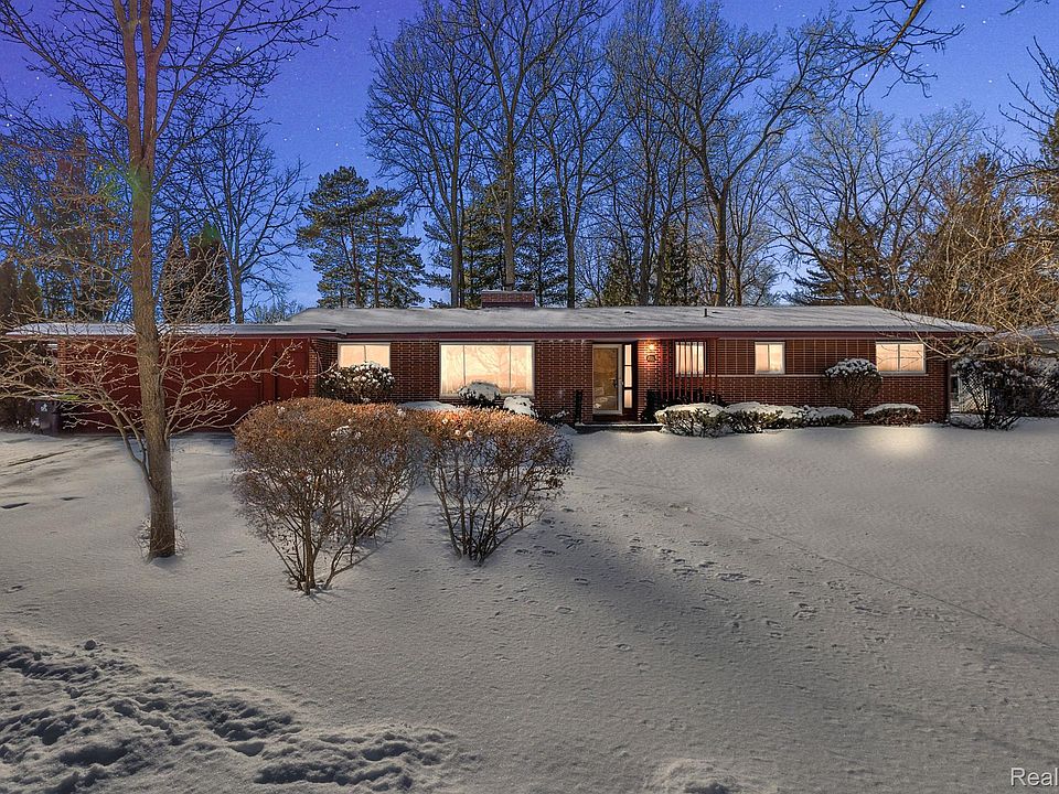 Welcome to this stunning four-bedroom, two-and-a-half-bath mid century modern ranch, nestled in a quiet and charming neighborhood. With its classic brick exterior and expansive windows, this home exudes timeless character and warmth. Step inside to an inviting open floor plan where natural light pours in highlighting the spacious living room with a striking brick accent wall and cozy fireplace-perfect for relaxing or entertaining. Just around the corner, the dining room offers an intimate setting with views of the glowing fireplace and the picturesque backyard through the adjacent family room's large windows. The well appointed kitchen comes equipped with a refrigerator, stove, dishwasher, and microwave, providing everything you need for daily living. A finished basement with a second fireplace offers extra living space-ideal for a home office, recreation room, or additional entertaining area. Outside, the professionally maintained lawn and built-in sprinkler system add convenience and curb appeal. This home is packed with modern amenities and thoughtful details, making it a rare find in such a desirable location. Don't miss this opportunity to own this classic mid-century Gem!