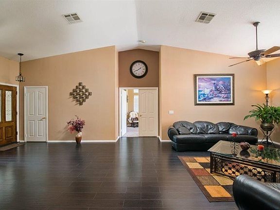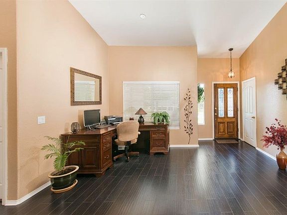 Beautifully maintained, turn-key home ready for you to move in! This 4 bedroom 3 bath offer an open and bright, single story floor plan. There is plenty of room! Tastefully painted in neutral colors with gorgeous dark wood-like flooring throughout home with carpet in the bedrooms and tile in the bathrooms. The kitchen is large and offers granite counters, beautiful oak cabinets, stainless steel appliances and a large center kitchen island offering plenty of room for food prep and entertaining and additional seating for meals at the breakfast bar. The center island is plumbed and has a double sink. All the bedrooms are good-sized and the master is large with adjoining bathroom and a walk in closet. The backyard offers plenty of room and is beautifully landscaped! There is plenty of room to add a pool and spa if you desire! This home is situated in a lovely and sought after neighbohood, do not miss this opportunity!