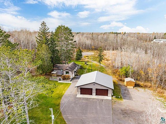 Set far back from the road on a serene, park-like 5-acre lot, this fantastic 3-bedroom, 2-bath home is a dream for anyone seeking country living close to town! From the moment you drive down the long paved driveway, surrounded by tall pines, you'll fall in love with the peaceful setting and the impressive 40x40 heated garage. The open concept main floor boasts a bright and airy living space with hardwood flooring, a sliding door leading to a cozy front patio, a dining area, and an updated kitchen with granite countertops, stainless steel appliances, and a gas stove. Step out from the kitchen onto the large back deck, perfect for entertaining. There are 2 nice-sized main floor bedrooms, and a 3/4 bath with a tiled walk-in shower. The lower level offers a bedroom with a walk-in closet, a mud room, a storage room, a laundry/utility room, and a full bath that includes a sauna. Step outside to unwind in the hot tub or work on your projects in the expansive 4-car garage, which also features an indoor/outdoor kennel for your pup. There is also ample outdoor parking for boats, RVs, and a storage shed. Conveniently located near Miller Hill shopping and downtown, this home provides a perfect balance of country living and accessibility to urban amenities. Schedule your showing today before this gem is gone!