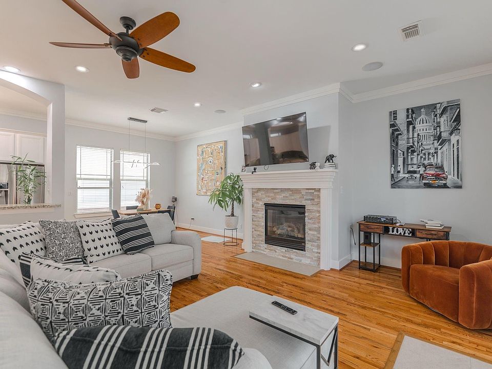 Welcome to this amazing home located in the highly sought-after Rice Military area of Houston, featuring desirable 2nd-floor open-concept living with a half bath and built-in speakers.The kitchen offers a skylight, under-cabinet lighting, granite countertops, and stainless-steel appliances, including a refrigerator with a flexzone drawer. The luxurious 3rdfloor primary suite includes a washer and dryer, dual closets with organizers, and a spa-like bathroom with a Carrara marble double-sink vanity, separate shower, and beautiful soaking tub, all enhanced by abundant natural light throughout the home. The 1st-floor bedroom serves perfectly as a guest suite with its own full bathroom and access to the outdoor patio. Ideally located near Buffalo Bayou Park trails, H-E-B, and the vibrant Washington Avenue area, this home offers exceptional comfort and convenience. Landlord is also offering the home fully furnished for an additional cost, making it move-in ready for an effortless transition.